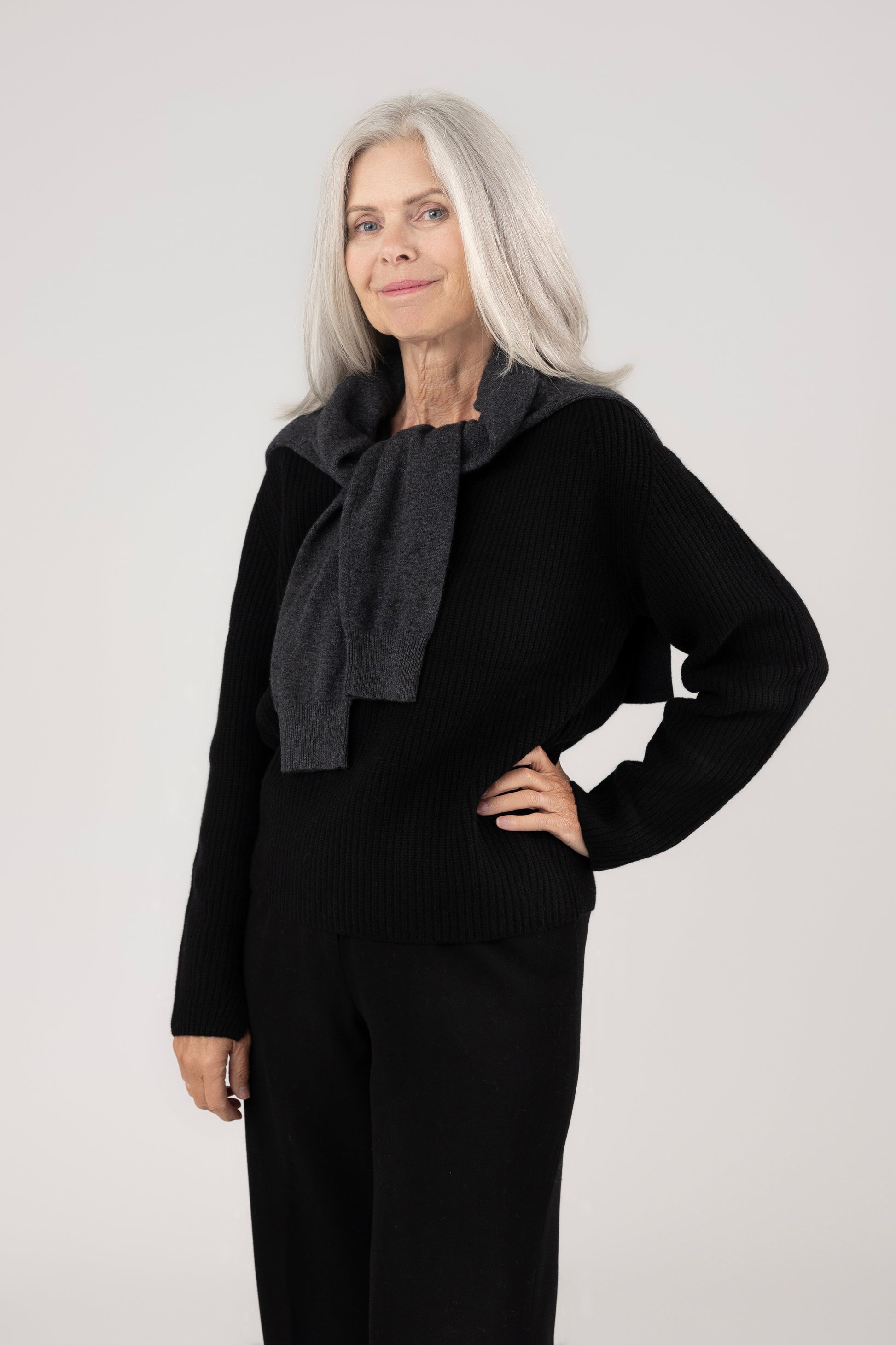 With its deeper neckline and structured feel, it brings both style and substance to your wardrobe, making it easy to wear in the moments that matter most to you. Blended from premium cashmere and fine natural wool, it balances softness, durability, and comfort — offering that unmistakable Pogn warmth with a more textured, elevated touch.